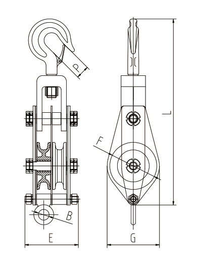1、滑轮,采用精致铸钢轮,较之铸铁轮更加安全耐用。