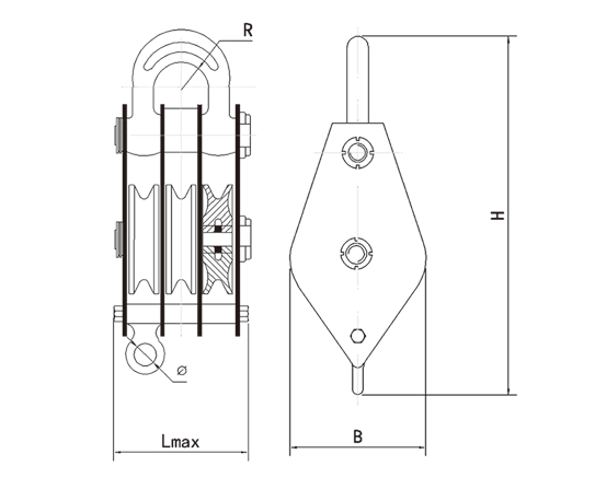 1、吊钩特点:优质合金钢模锻而成,3倍安全系数。 2、滑轮:铸铁滑轮、铸钢滑轮、热轧滑轮。 3、滑轮套芯:复合耐磨铜套、纯铜套、滚珠轴承、滚针轴承。 4、其他吨位可以定做。